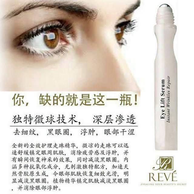 The New Product Reve Eye Lift Serum , it's amazing, seriously ! reduce swollen on my "Puffy eye " ! apply on and massage on , just 10mins ! will saw the difference!
