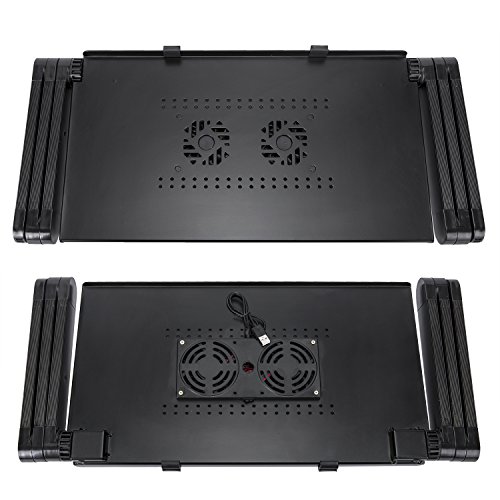 -. Feature : *LIGHT WEIGHT ALUMINUM TRAY : Makes Carrying Easy and Holds Your Computer at Virtually Any Position or Angle / *SILENT USB POWERED CPU COOLING FANS : Connect USB Cord (Included) to Your Computer to Power The Quiet Cooling Fans. / *FULLY ADJUSTABLE LEGS :Rotate 360 Degrees and Lock in Place at Various Angles. Quickly Collapse The Stand to Make it Portable. / *USE IT ANY WAY YOU WANT IT : Ergonomic Table Can Also Be Used For a TV Dinner or Breakfast Tray, Sound Equipment, Projector,Notebook Standing Desks, Book Tray, Writing Desk,Tablet Holder,and Other Then Laptop Stand. / No Questions Asked. If You Do Not Like It or Don't Want It For Any Reason, We Will Happily Accept The Return and Give You Your Money Back.MONEY BACK GUARANTEE .
