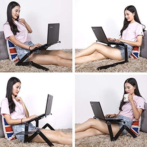 -. Title : Gladys Moses Portable Adjustable Aluminum Laptop Desk/Stand/Table - Ergonomic TV Bed Lap Tray With Vented Cooling Fans