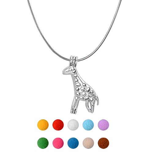 18" Stainless Steel Tones Giraffe Beads Locket Charms Pendant Necklace (style 22)