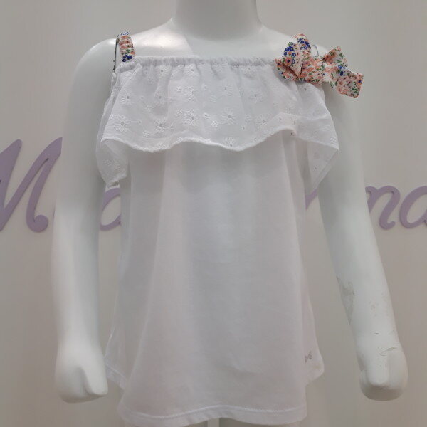 펀칭레이스로 숄더에 포인트를 줄 티블 라우스에요. 화려한 패턴물로 빅리본이 시선을 사로 잡아요. 핫여름 멋스럽고 시원하게 코디할 수 있는 아이템으로 와 예쁘고 시원하게 코디하세요.