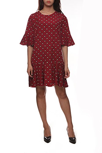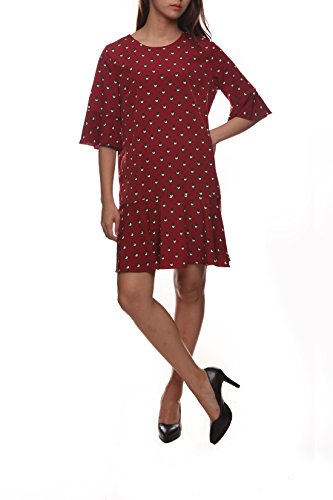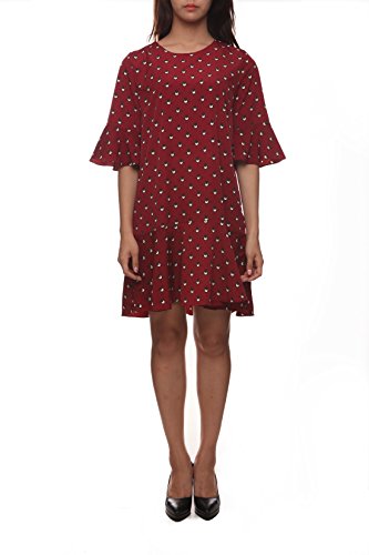 KATE LUX Vintage Owl Print Crepe Dress - Brick Red