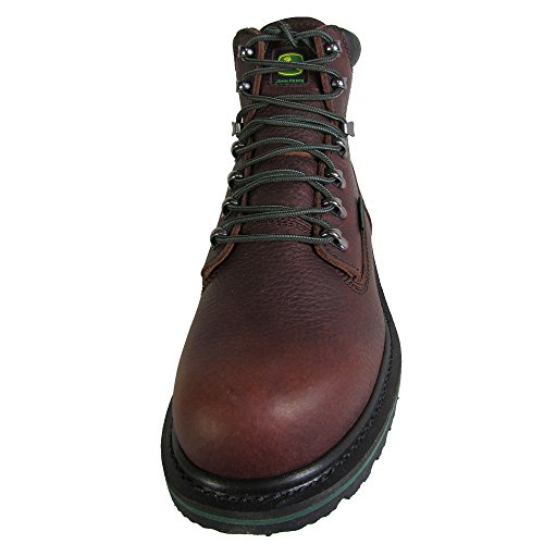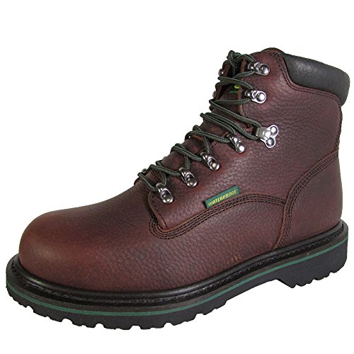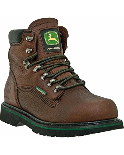 Studio : John Deere Footwear Publisher : John Deere Footwear Binding : Apparel Product Description John Deere 6" Waterproof Lace - Up Boots... rugged, wet - weather ready Boots! Step out into the elements with confidence! Get a no-slip grip with the advanced Black Combine II rubber outsole that steadies your footing on wet rocks or slick earth. Excellent waterproof construction on these John Deere's will keep your tootsies bone dry in rainfall or puddles... waterproof leather uppers lock out moisture. And you'll travel securely over rough terrain with the sturdy steel shank for stability. The rest: Durable Goodyear welt construction; Forest green Agion antimicrobial lining for odor control; Removable John Deere air flow comfort orthotic system insert absorbs shock and keeps your feet feeling fresh; Solid brass eyelets and hooks set with stainless steel washers; Each Boot weighs approx. 34 ozs.; State Size. Bring these babies home today! Men's John Deere 6" Waterproof Lace-Up Boots, Dark Brown 0