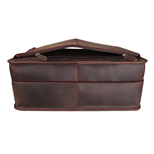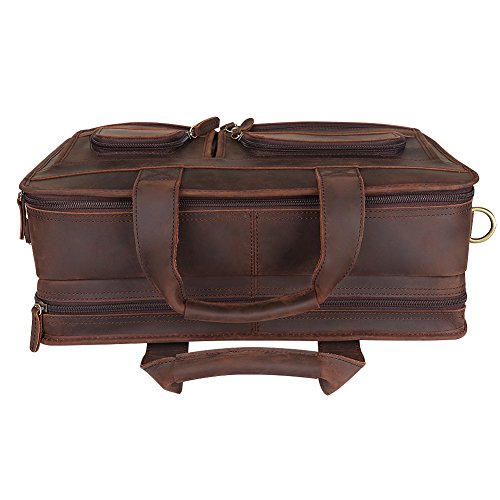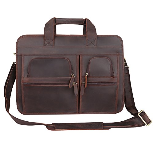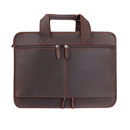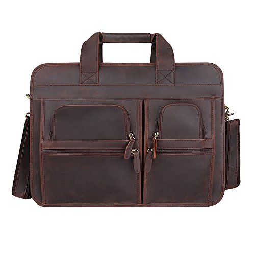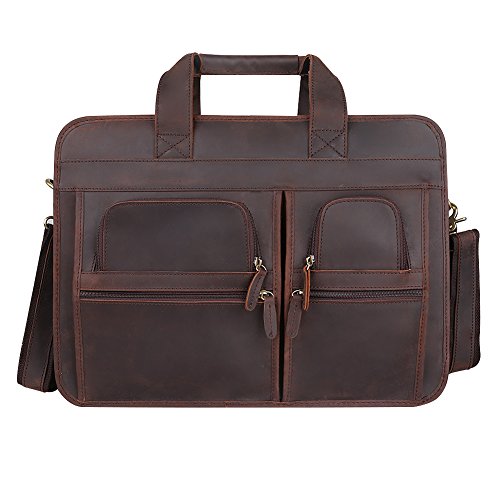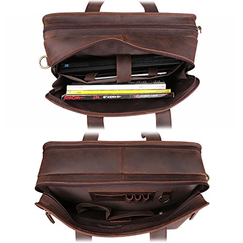 -. Feature : 100% Brand New. Made by Imported Top Layer Crazy-Horse Genuine Cow Leather / 2-way top zipper closure / High quality antique brass hardware / Top carry handle; Adjustable, padded and detachable leather & braid shoulder strap / You can take 17" Laptop, iPad Air, A4 magazines, wallet, etc to this multifunctional briefcase