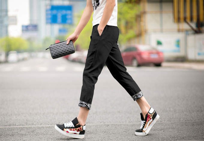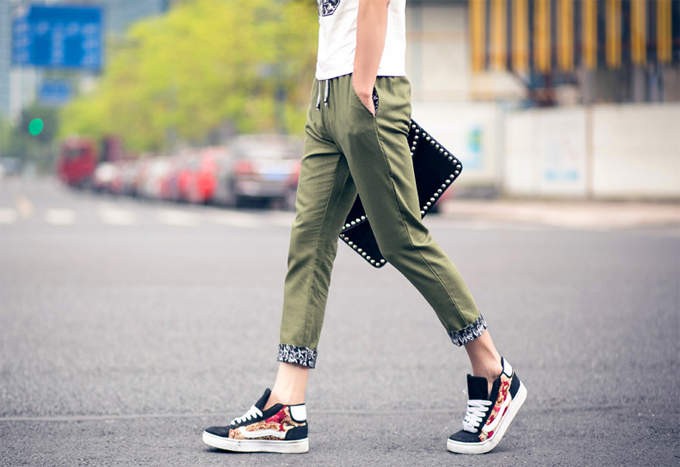 ■実寸サイズ(cm):(1)総丈(2)ウエスト(3)ヒップ(4)モモ幅(5)裾幅