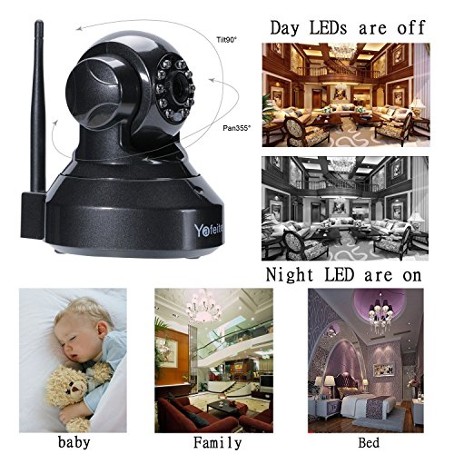 -. Feature : [Excellent Quality] HD Wireless IP Camera , offers Resolution 1280*720P, 12 pcs leds, night vision range up to30ft;Built in IR-Cut Technology ,See in stunning clarity and sharper details with HD wifi cameras in Day/Night. / [Two Way Audio] Built-in speaker and microphone allow voice communicating between camera and app. You can talk and listen to your family or friend on mobile device. Supporting video monitor recording to micro SD card 128GB. / [Pan / Tilt] Horizontal angle 355 degree and 90 vertical degree monitor every corner under home surveillance wifi camera; Move the Security IP camera as you wished, with IR-Cut Technology , so the dark place at your home is no longer the place you worry about. / [Range of Application] Ideal suited to small business, factory, home usage. you can watch room, baby, toddler, pet, elder person, with sharp HD video and contrast-rich voice. / [Warranty] Full 1-Year Warranty and Lifetime Support Provided Directly from Yafeite, if your camera has any problem, just contact our customer service, if it is not damaged by man-made, we will replace for you totally free.