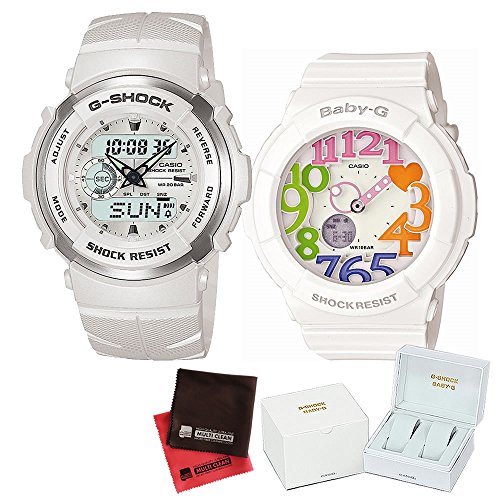 -. Feature : 商品セット内容:腕時計 G-300LV-7AJF メンズ・BGA-131-7B3JF レディース・専用ペア箱(Gショック& ベビーG)・マイクロファイバークロス 2枚セット V-81776 / 腕時計セット内容:本体、ボックス、取扱説明書、保証書は取扱説明書に付属 / G-SHOCK(ジーショック):サイズ(高×横×奥) 51.7×46.0×16.5mm、質量 60.0g、装着可能サイズ 約145~205mm、精度:平均月差±15秒、20気圧防水 / Baby-G(ベビージー):サイズ(高×横×奥) 43.4×43.1×15.0mm、質量 44.0g、装着可能サイズ 約125~180mm、精度:平均月差±30秒、10気圧防水