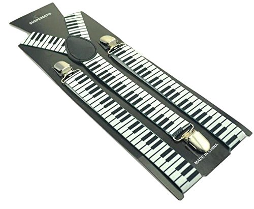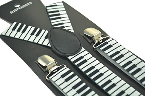 (Suspenders)/Accessories/Suspenders Cummerbunds/DIRECT FROM USA/Unisex Piano Small Black/White Keys/Keyboard 2.5cm/1inch Wide Clip-On Suspenders Y Back