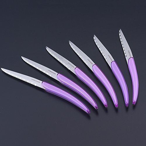 FlyingColors Steak Knife Set, Unique Design, Stainless Steel, Violet Color Handle