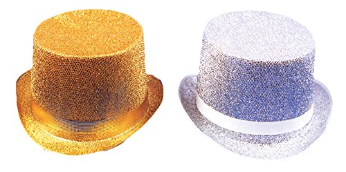 Product DescriptionExcellent top hat in gold lame'. One size fits most. Brim measures 1 3/4 inches front and 1 inch side. Height 4 1/2 inches.0