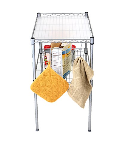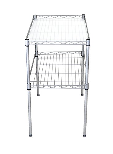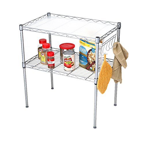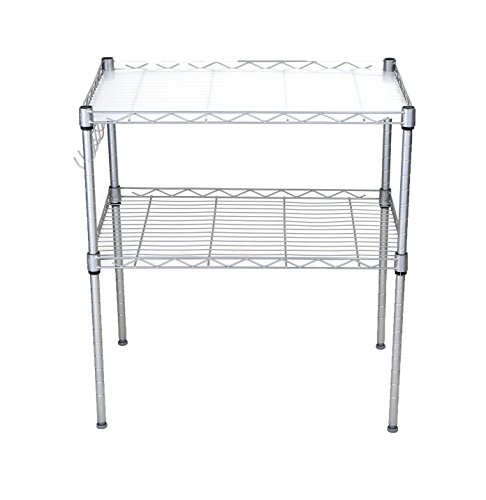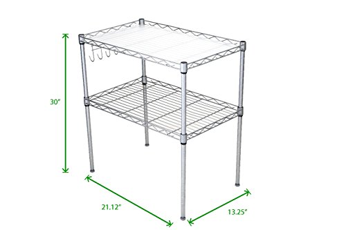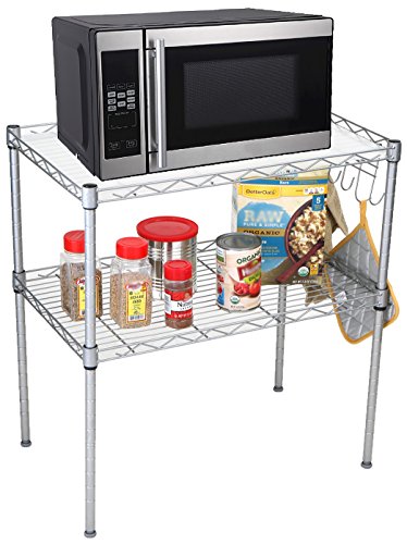 Mind Reader 2 Tier Microwave Shelf and Rack with 6 Hooks, Silver