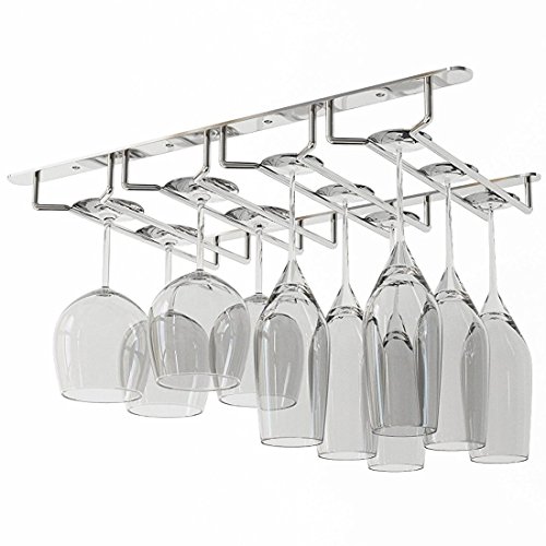 JMiles Under Cabinet Hanging Stemware Rack Hold Up To 12 Wine Glasses (Chrome)