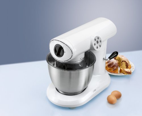 -. Feature : Leistungsstarke Maschine mit extra starken 1000 Watt / 6-Stufen-Schaltung (1-2-3-4-5-6) / 5-Liter-Edelstahl-Schüssel für max. 2 kg Teig-Zubereitung