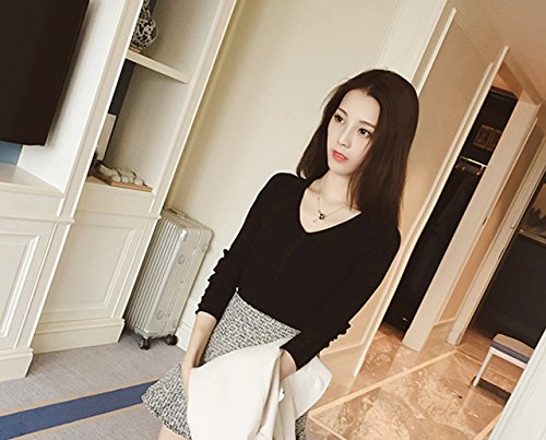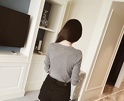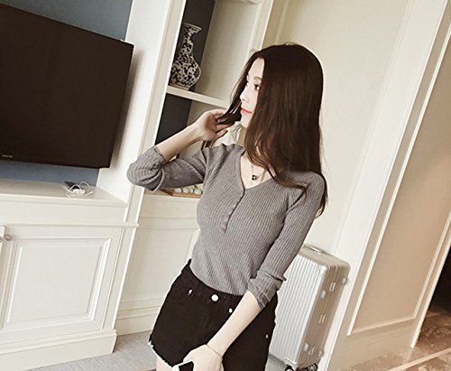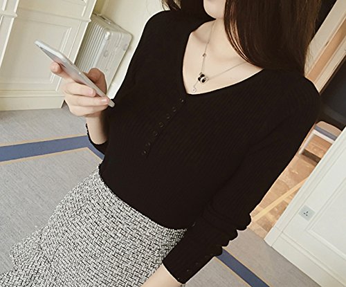 -. Title : (ココチエ) kokochie 長袖Tシャツ レディース リブ編み Vネック 着やせ 大人っぽい ボタンニット