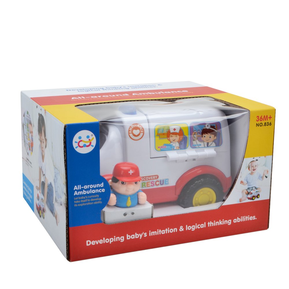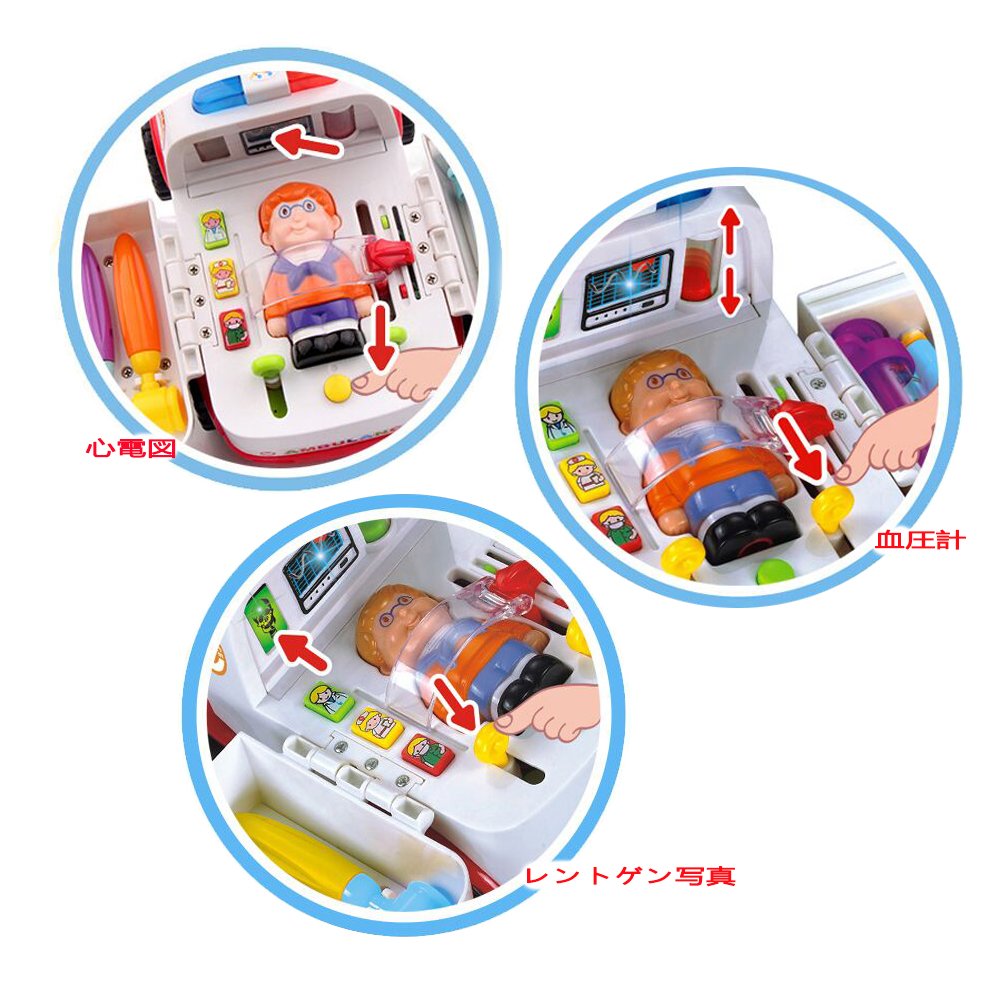 Placing the driver on the seat, the ambulance picks up the patient while sounding a siren.