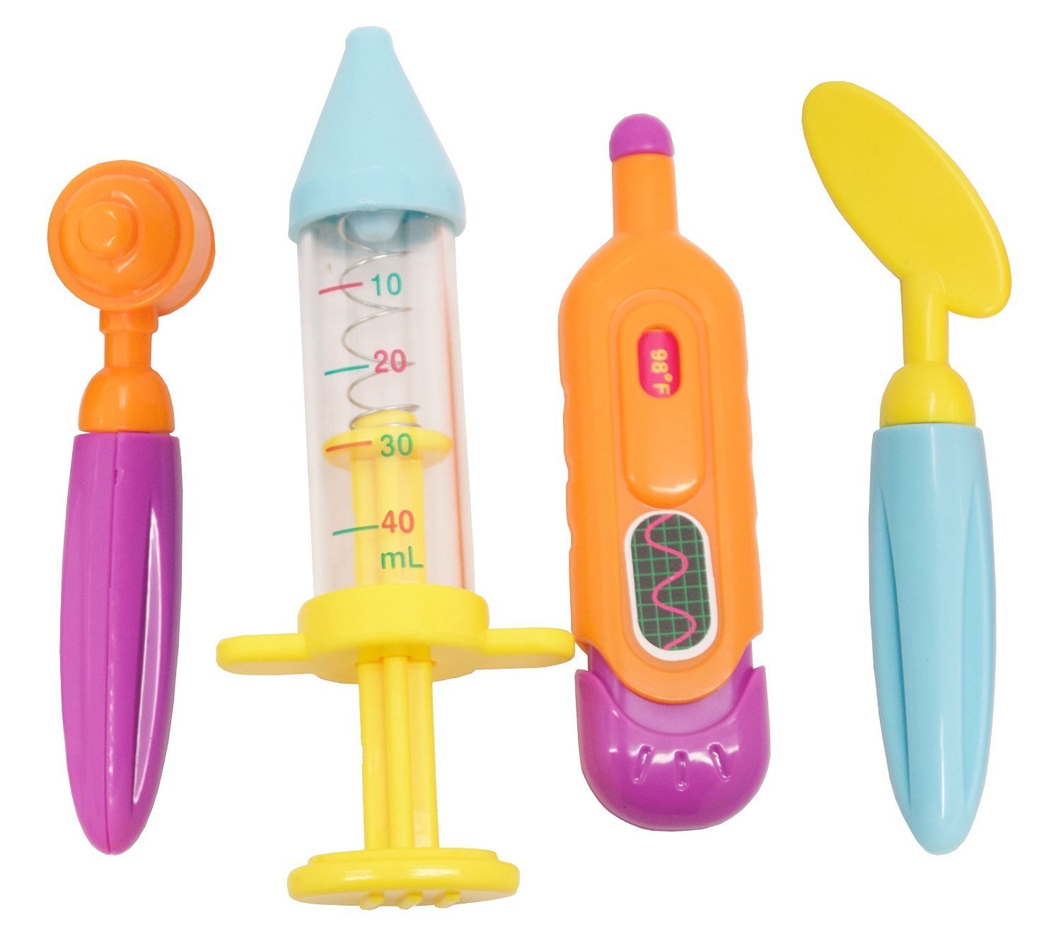We have a doctor's necessities such as a thermometer and a syringe.