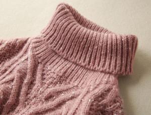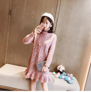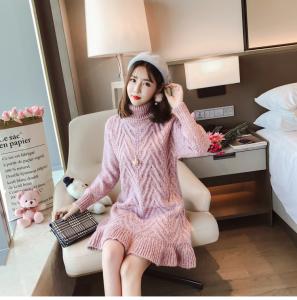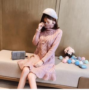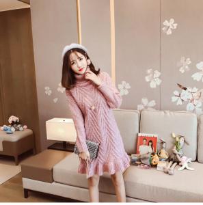 女性らしいAラインに裾のフリル、優しく包み込むタートルネックデザイン♪