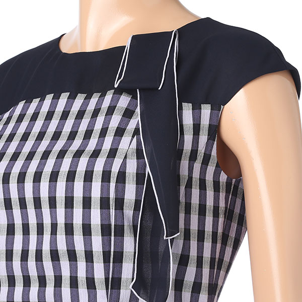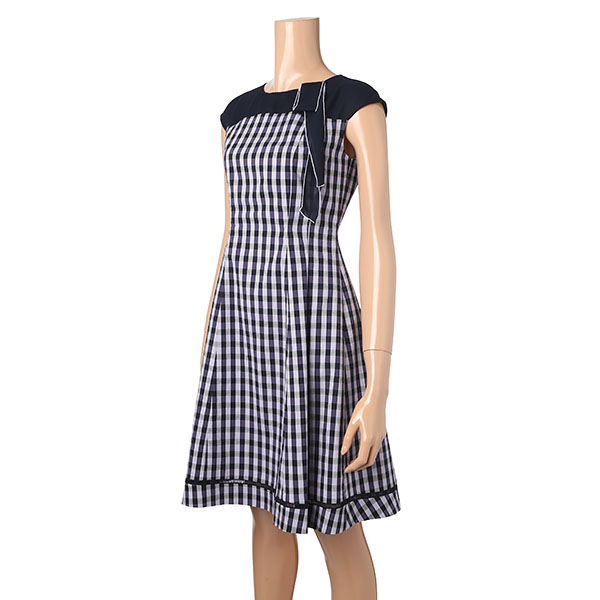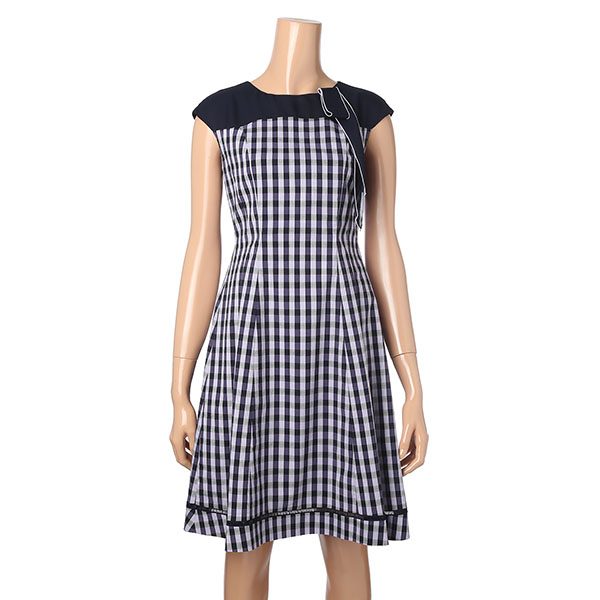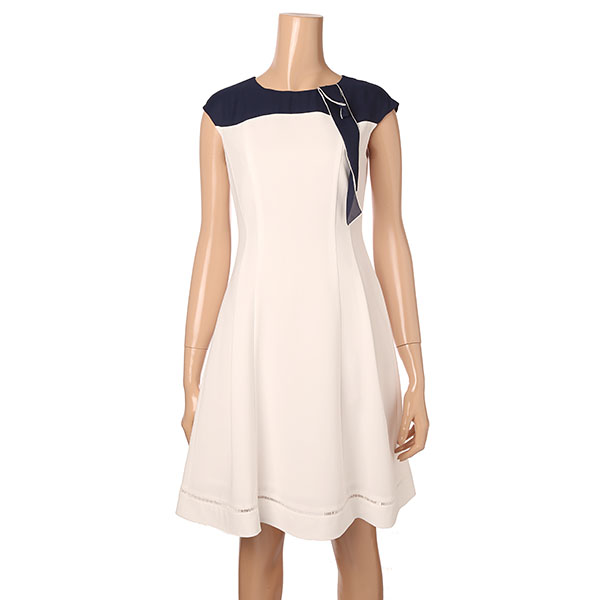 라운드 네크라인에 장식된 스카프가 돋보이는 원피스입니다.