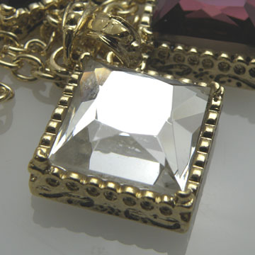スクエアカットされたクリスタルのチェーンネックレス★ゴールドタイプ。首もとの色気を醸し出してくれます★