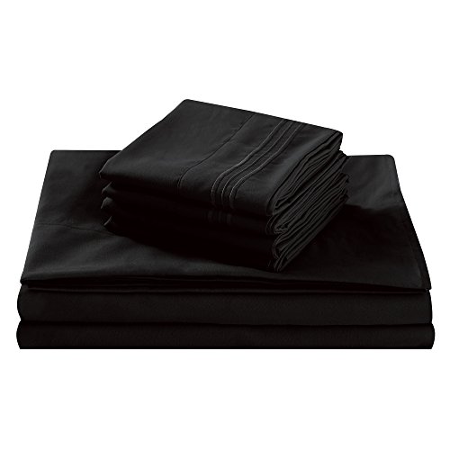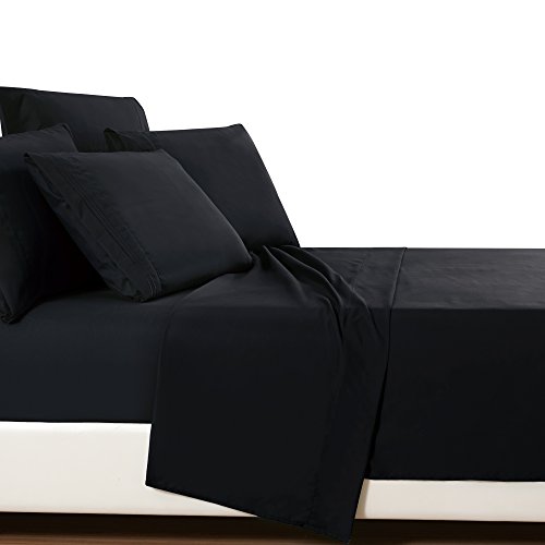 Queen Size Bed Sheet Set, Black, 100% Soft Brushed Microfiber, 1800 Series Luxury Platinum Collection, Deep pocket, Hypoallergenic, Wrinkle Free, Breathable, 6 Piece Set, Fifth Avenue Home
