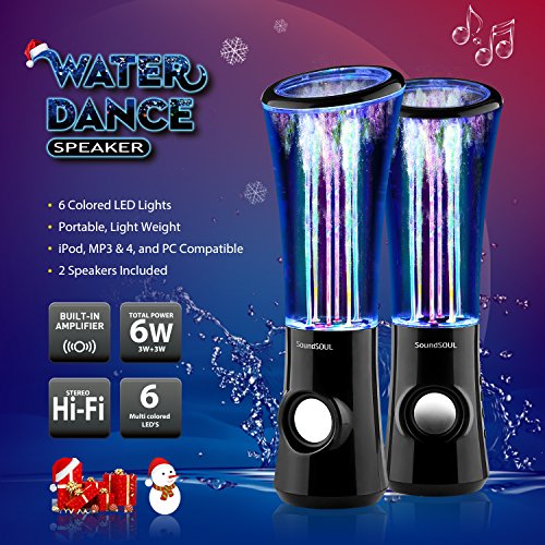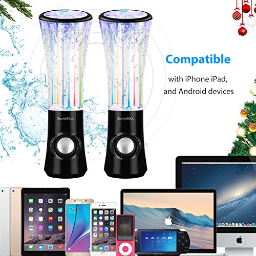 [Magnificant Led Light and Water Dancing Design]: The exclusive fantastic design makes 4 different color led light and fountain showing at the same time when you listen to music. The fountain will be higher if the sound is louder. It is the combination of art and visual enjoyment.