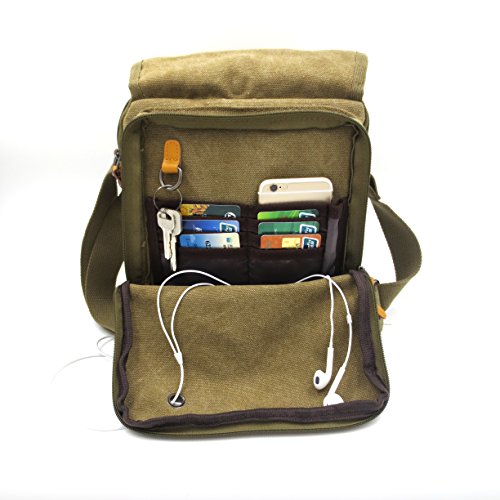 Studio : MiCoolker Publisher : MiCoolker Binding : Misc. Product Description Features: This is a shoulder messenger bag. It has many categories of functions pockets, can meet all your daily needs. Versatile design, using high-quality canvas material, very practical and durable. Most people are very fond of it. It is divided into two main interlayer room. 1.Front interlayer room: one flip cover with a zipper pocket, used to ensure safe and reliable. Under the flip cover have seven function pockets to organize different items, like wallet, cell phone, pens, bank cards, notes cards, coins and so on. 2.Back interlayer room: one large capacity main room with zipper pockets, mainly used for placement cell phone, wallet, iPad, camera, textbooks, documents, umbrellas, cosmetics and other big-ticket items. It is your best choice to buy a messenger bag for your daily use. Dimension : Approx 9*20*23 cm = 3.5*7.8*9 inch Material: Canvas