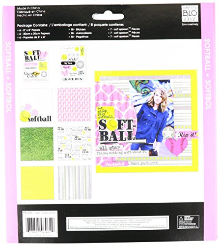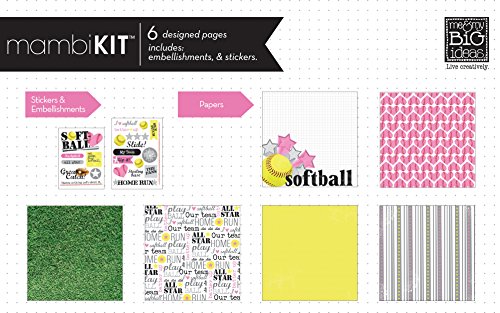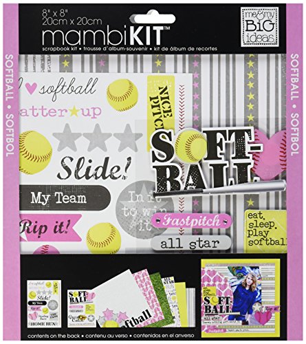 me & my BIG ideas Scrapbook Page Kit, I Heart Softball, 8-Inch by 8-Inch