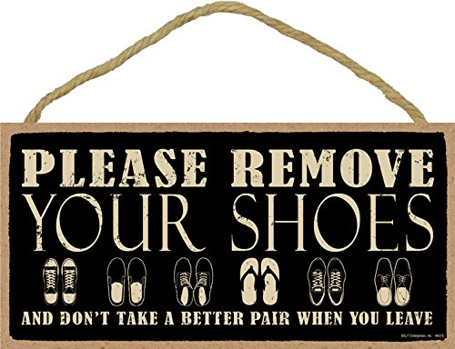 (SJT94375) Please remove your shoes and don't take a better pair when you leave 5" x 10" wood sign plaque