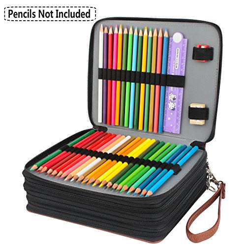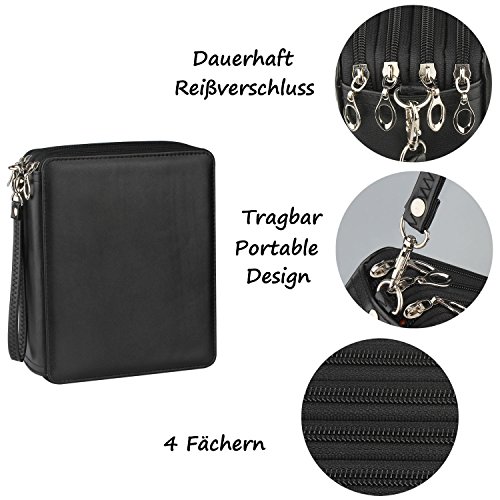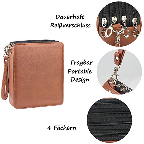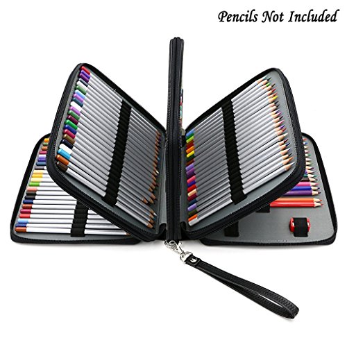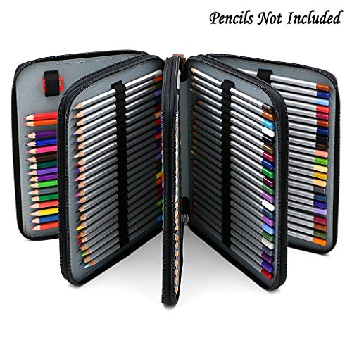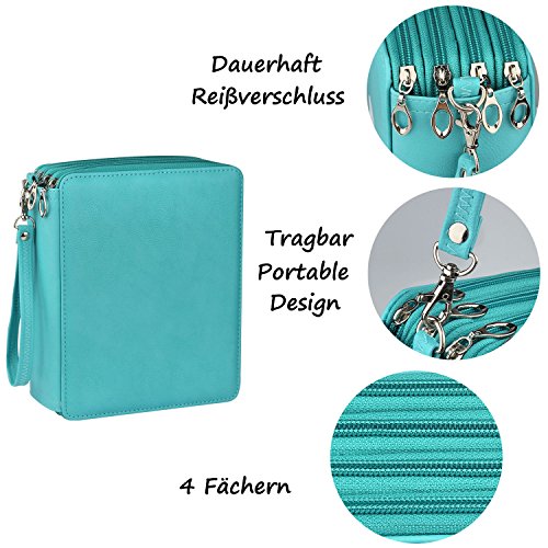 NIUTOP Buntstifte Federmappchen, Niutop 168 Slots PU Leder Mappchen Tragbar Mehrschicht Abwaschbar Stationare Tasche fur Prismacolor Bleistifte, Crayola Buntstifte, Marco Buntstifte, Poly