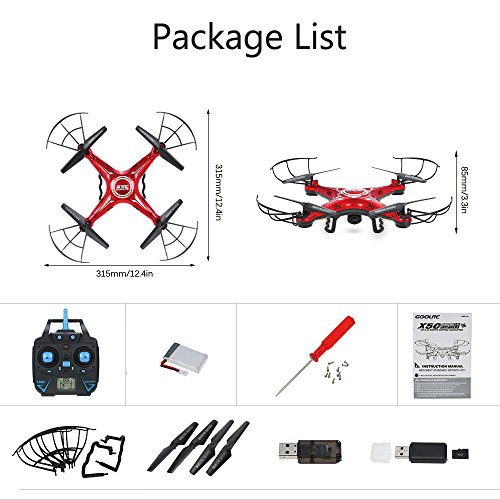 GoolRC X5C RC 드론 2.4GHz 4CH 6축 쟈이로 2.0MP HD 카메라 하늘촬 쿼드콥터 멀티콥터 원 키 리턴 헤드 레스 모드 360°반전 기능
