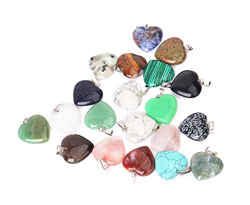 Peicees 20 Set DIY Crystal Gemstone Pendants Heart Shape Healing Chakra Beads and Rope for Woman Necklace Earring Jewelry Making Accessories