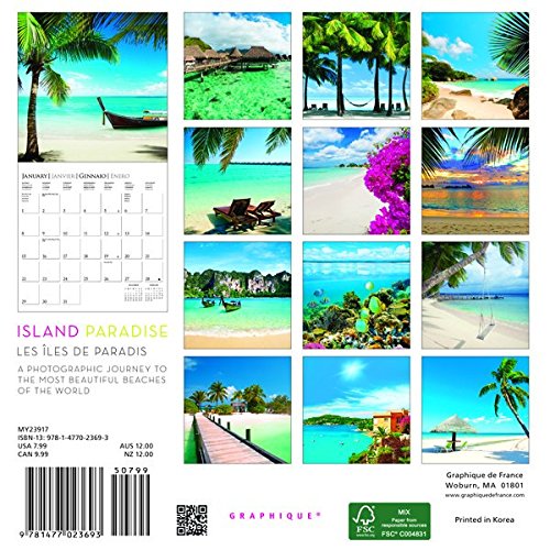 -. Binding : Calendar -. Brand : Graphique -. EAN : 9781477023693 -. Edition : 16m Min Wa -. Feature : Size: 7" x 7" format / Plan ahead with a 4-month preview page for 2018 / Each page includes before & after preview months / Includes public & culturally significant holidays / 4 languages: English, French, Spanish & Italian -. ISBN : 1477023690 -. Label : Graphique de France -. Manufacturer : Graphique de France -. Model : MY23917 -. MPN : MY23917 -. NumberOfItems : 1 -. PackageQuantity : 1 -. PartNumber : MY23917 -. ProductGroup : Office Product -. ProductTypeName : OFFICE_PRODUCTS -. PublicationDate : 2016-07-15 -. Publisher : Graphique de France -. Studio : Graphique de France -. Title : Graphique 2017 Island Paradise 7" x 7", Mini Calendar (MY23917)