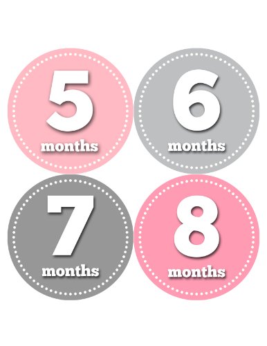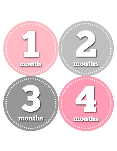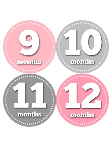 -. Binding : Baby Product -. Brand : Months In Motion -. Color : grey, pink -. Department : Baby-boys -. EAN : 0764130835450 -. Feature : Just peel, stick, and take a photo to document your baby's first year! / Makes a wonderful shower gift! / The perfect baby photo prop! / P.R.Inted on white matte sticker so no glare in photos / Includes 12 precut stickers that are approximately 3.93 inch diameter -. Label : Months In Motion -. LegalDisclaimer : Stickers are to be used under adult supervision only. Do not leave stickers on baby unattended. -. Manufacturer : Months In Motion -. Model : 046 -. PackageQuantity : 12 -. ProductGroup : Baby Product -. ProductTypeName : BABY_PRODUCT -. Publisher : Months In Motion -. Size : 4 inch Diameter -. Studio : Months In Motion -. Title : Months in Motion 046 Monthly Baby Stickers Baby Girl Months 1-12 Pink Grey -. UPC : 764130835450