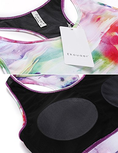 Ekouaer Womens Printed Sports Bra Medium Support Racerback Push up Bra