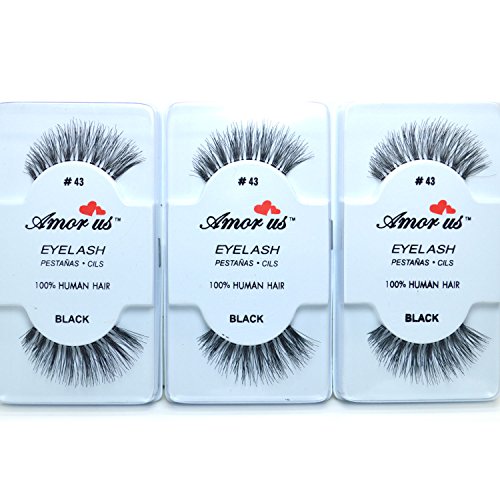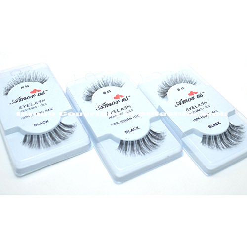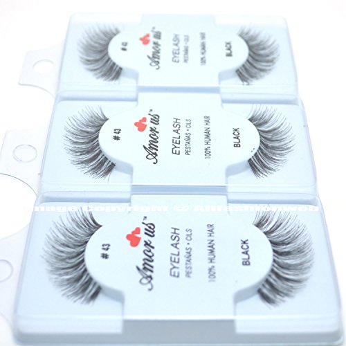 3 Pairs AmorUs 100% Human Hair False Eyelashes #43 compare Red Cherry Long + Free Earring
