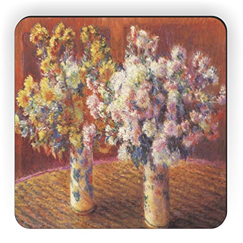 Rikki Knight Claude Monet Art Two Vases with Chrysantemums Design Square Fridge Magnet