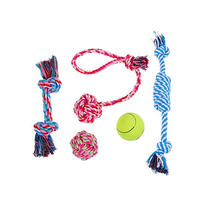 Lictin 견용 로프 장난감 개 깨무는 장난감 애완동물용 덴탈 당근 장난감 개의 치약용 장난감 훈련용 볼 소형견과 중형견에게 적용하여 5 개세트