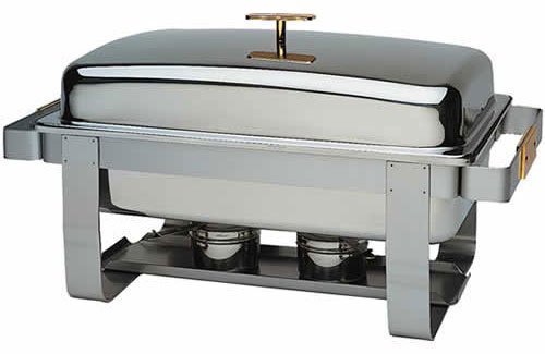 Studio : Update International Publisher : Update International Binding : Kitchen Product Description This gold accented grandeur chafer have 18/8 stainless steel construction with mirror polish finish. Accentuated with gleaming 24-karat gold to catch the eyes. Features gold plated handles, welded for added strength and security. Comes complete with a stand, dome cover, water pan, fuel holder and 8/8 stainless steel food pan. Dome covers can be stored conveniently on the side of each chafer. It is heated by canned fuel, making it easy to station the chafer anywhere without having to worry about finding a nearby electrical outlet. This makes it unbelievably useful for outdoor events like summer weddings and graduation parties. It has capacity of 8-quart. 0