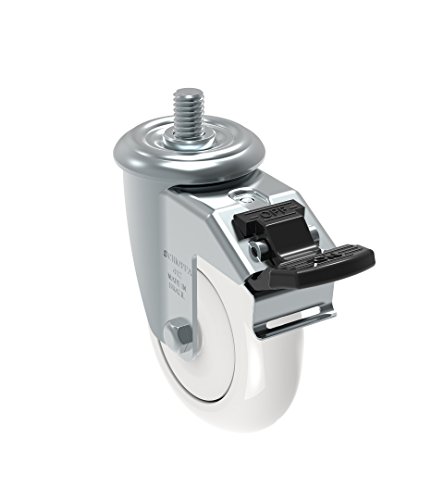 Schioppa GLEED 412 NTE G L12 Series 4" x 1-1/4" Diameter Swivel Caster with Total Lock Brake, Non-Marking Nylon Precision Ball Bearing Wheel, 3/8" Diameter x 1" Length Threaded Stem, 375 lb