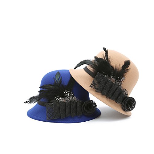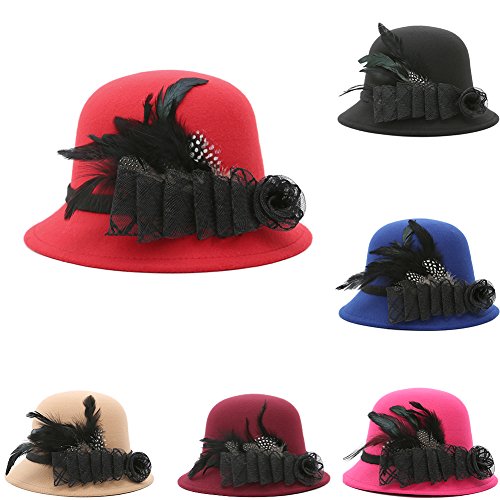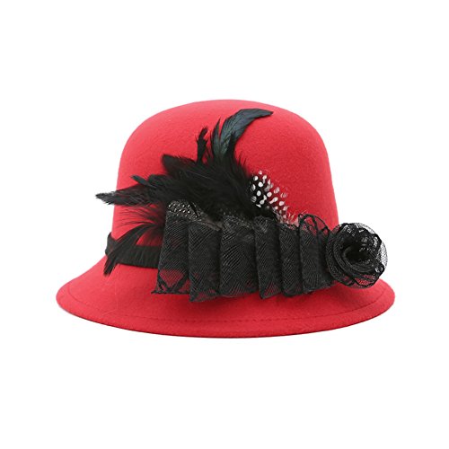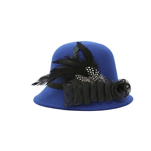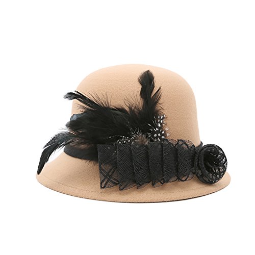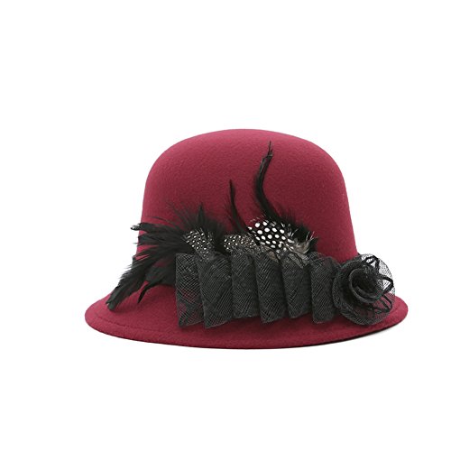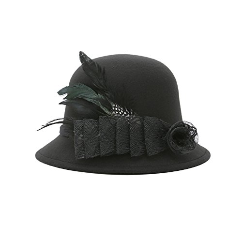 Studio : Softmusic Publisher : Softmusic Binding : Apparel Product Description Type: Bowler Hat Material: Imitation Wool Gender: Women's Feature: Warm, Comfortable, Feather Decor, Flower Decor Hat Circumference: 57cm/22.44" (Approx.) Hat Depth: 12cm/4.72" (Approx.)