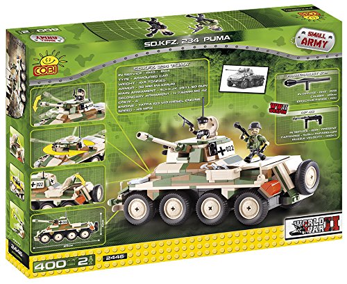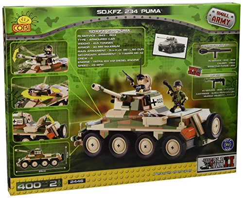-. Feature : Build a new adventure with COBI construction sets (each sold separately) / Build the German SDKFZ 234 Puma / This Small Army set contains 400 pieces and 2 figures / This COBI block tank model is equipped with many movable parts such as caterpillars and a turret / This item is a great addition to the extended Small Army collection