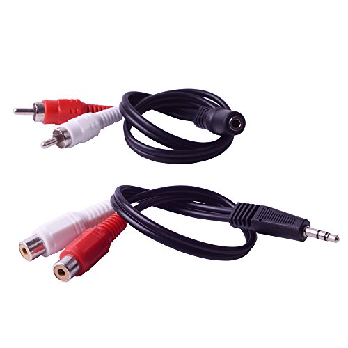 Top-Longer two Pack 3.5mm Jack to 2 x RCA Phono Audio Stereo Cable M/F and F/M 2 RCA Cable 30cm