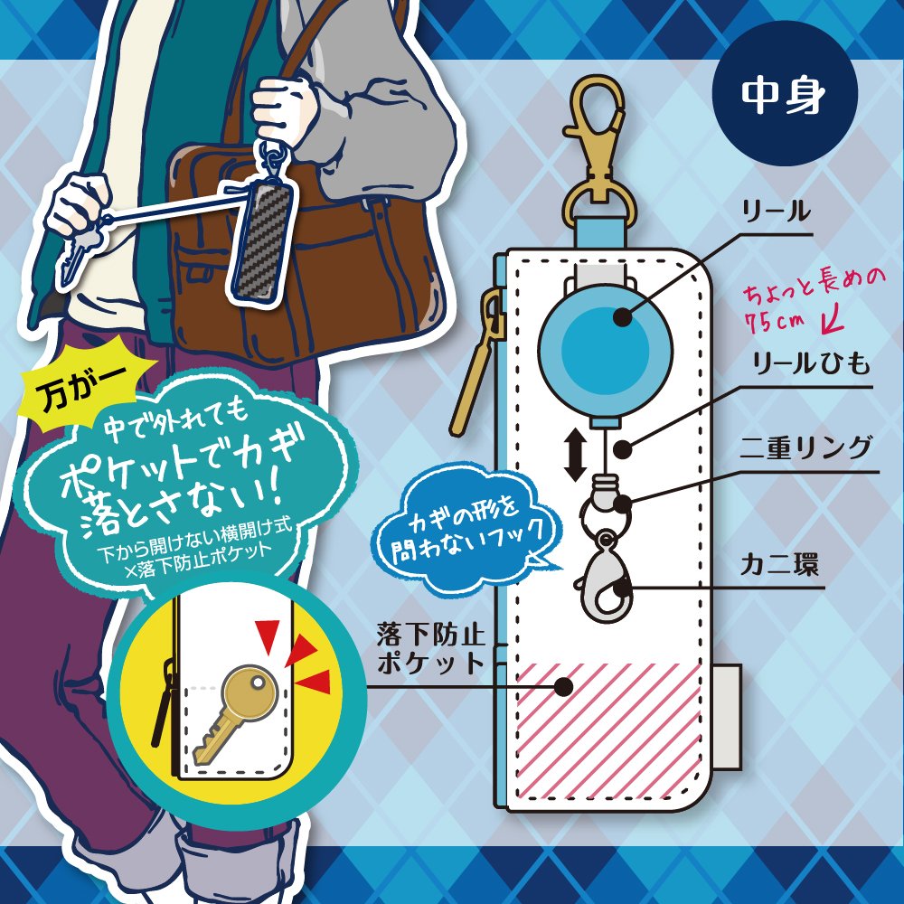 "Horizontal opening type zipper" and "Fall prevention pocket" are safe designs that will not be dropped even if the key comes off in the unlikely event.