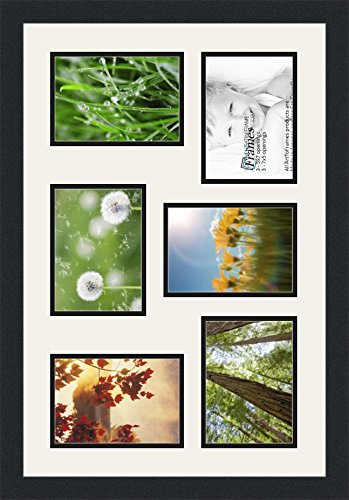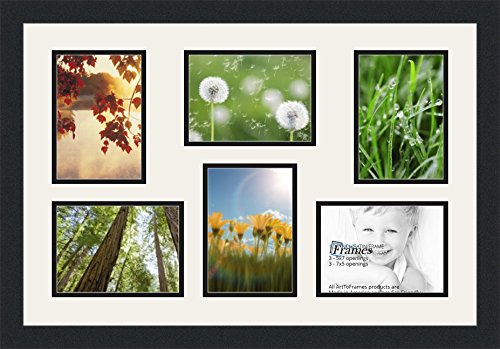 ArtToFrames Double-Multimat-351-61/89-FRBW26079 Collage Photo Frame Double Mat with 6-5x7 Openings and Satin Black Frame, Super White, 6-5x7
