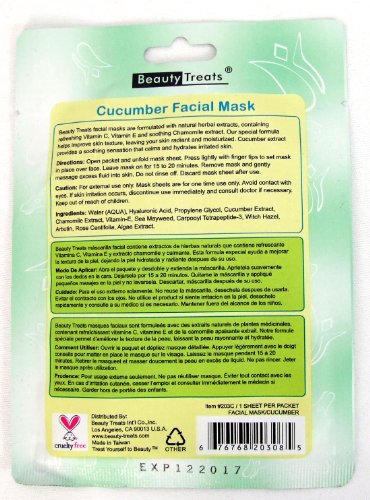 BEAUTY TREATS Cucumber Vera Facial Mask Refreshing Vitamin C Solution for All Skin Types (Choice Qty) 10 pk