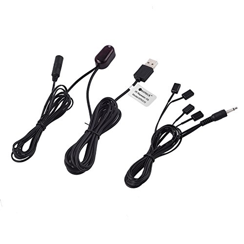 Emitter: Send the Signal to the A/V Components 34-60kHz Operating Range 5V USB AC Power Supply, Support Amplifier, Cable Box, Stereo Receiver, Satellite TV Receiver, CD Player, DVD Player, Blu-ray Player or any other Components which is Controlled by IR Signal(NOTE: Please Stick the IR Emitters on the IR Interface of Devices You Want to Control Remotely.)
