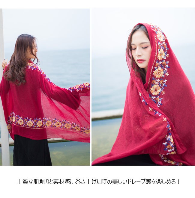 | 商品名 | 刺繍スカーフ リネンスカーフ 刺繍ショール 棉麻マフラー サマーマフラー レディース スカーフ ストール 民族風 大判サイズ お洒落 大人 |