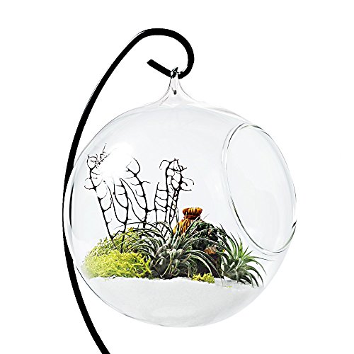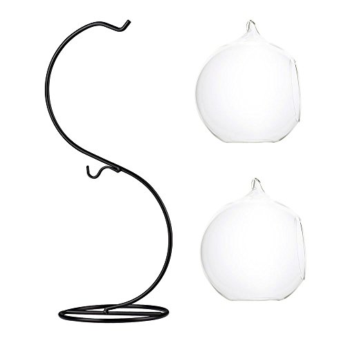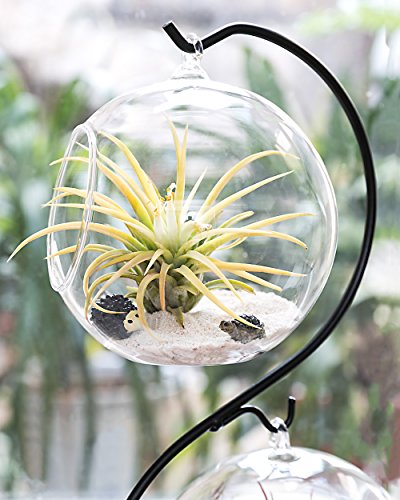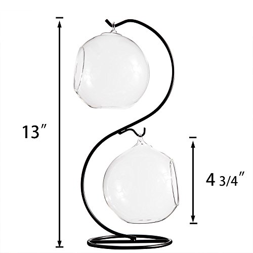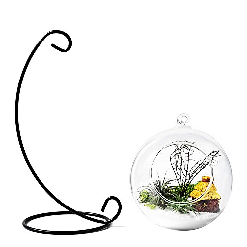 -. Title : Mkono Air Plant Terrarium Planter Hanging Planter Globe Container Pot Decorative Artificial Succulent Display Vase Candle Holder (with Black Metal Stand) -1 Globe