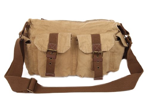 - Feature : Soft material,100% cotton 16oz garment washed canvas / Sufficient use of multiple pockets,Easy to carry your necessary / General use for Female & Male / Size: 13.4" x 8..3" x 4.7" (34 cm x 21 cm x 12 cm) / Style: Messenger Bag,Travel Satchel,Leisure Bag