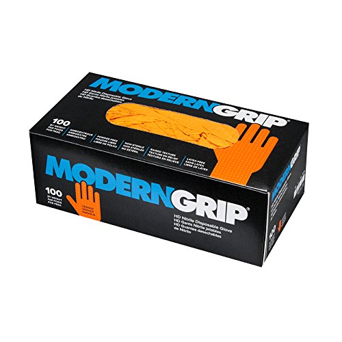 Modern Grip MG-HDNTR7OR-M Modern Grip HD Nitrile Disposable Gloves, 7 Mil Thickness, Raised Texture, Powder Free, M, Orange (Pack of 100)